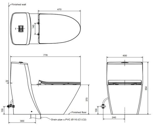 - Tâm thoát bồn cầu : 300mm (+-5)